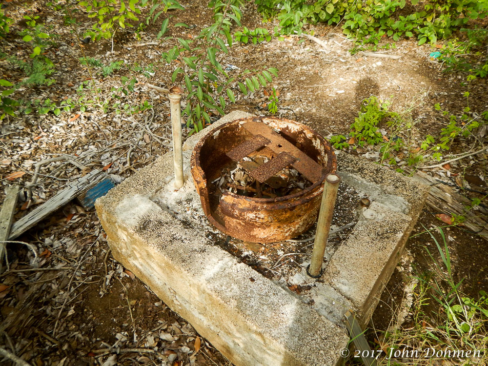 Waterbak als onderdeel van het irrigatiesysteem; via de gaten konden slangen de akker bevloeien